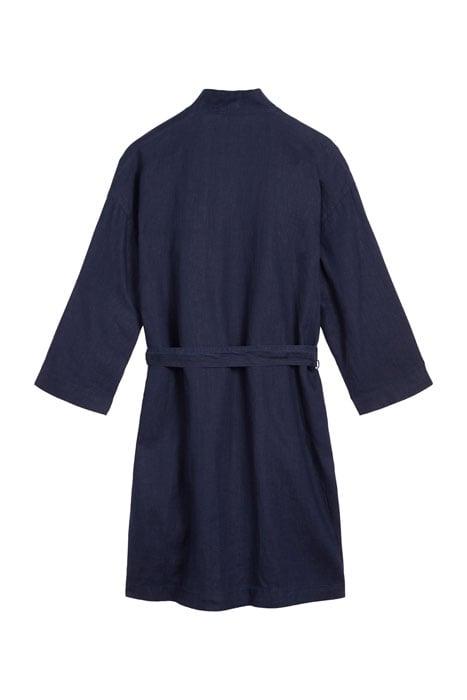 Luchtig en comfortabel is deze badjas gemaakt van een fijne linnen kwaliteit. De badjas heeft wijd uitlopende driekwart mouwen en een klassieke overslag. De verlaagde schoudernaden en de strikriem in de taille zorgen ervoor dat dit je ultieme badjas is.