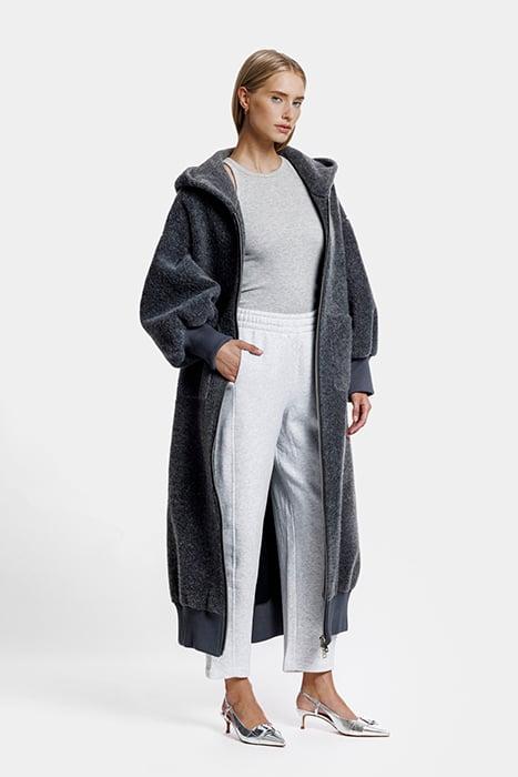 A Full-Length And Oversized Faux Mohair Jacket. It Features Pockets At Both Sides And The Center Front Closure Fastens Easily With A Zipper.