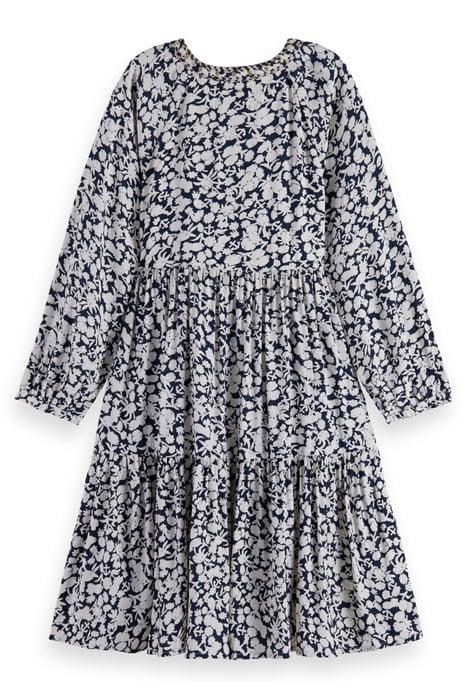 ALL-OVER PRINTED AND EMBELLISHED VISCOSE DRESS ANCHOR FLORAL