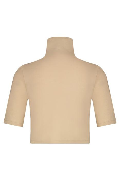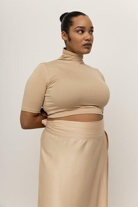 The Viveh Amber Top Is A Fitted, Slightly Longer Crop Top With A Turtleneck And A Mid-Length Sleeve.