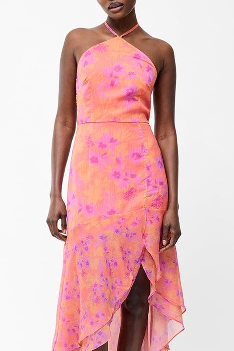 ARLA RUFFLE HALTERNECK DRESS CORAL MULTI