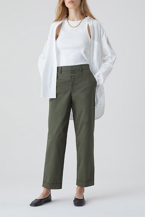 AUCKLEY PANTS PINE GREEN by Closed is a bold addition to any wardrobe. Imbued with Closed’s renowned dedication to quality and sustainability, this piece blends functionality with style, making it an essential addition to your wardrobe.