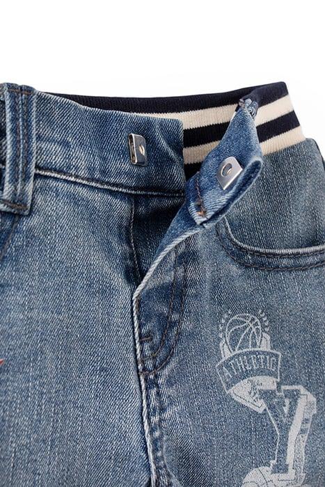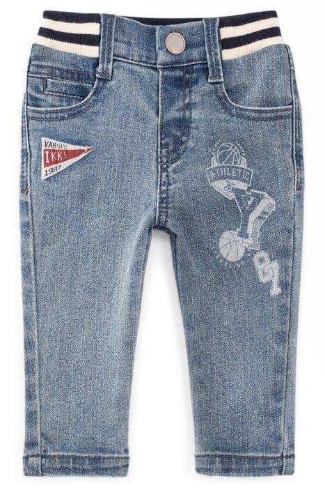 BABY BOYS’ BLUE JEANS WITH PRINT AND RIBBED WAISTBAND