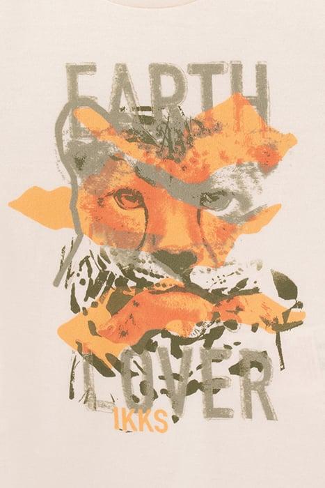 BABY BOYS’ ECRU LEOPARD IMAGE ORGANIC COTTON T-SHIRT