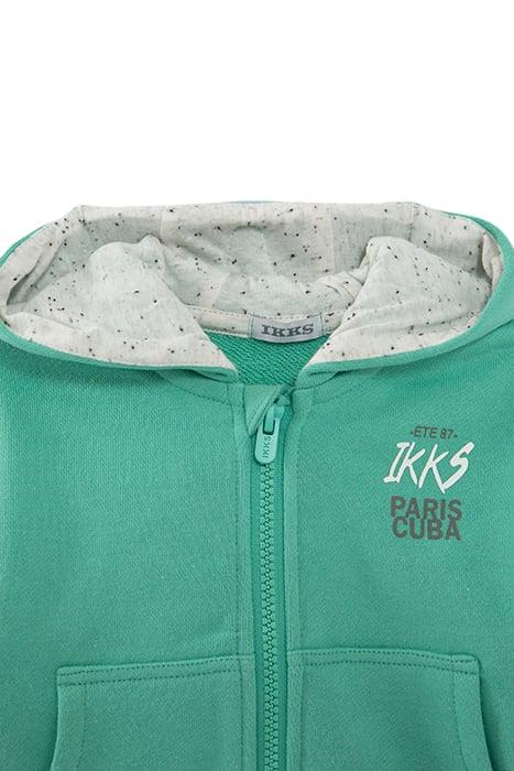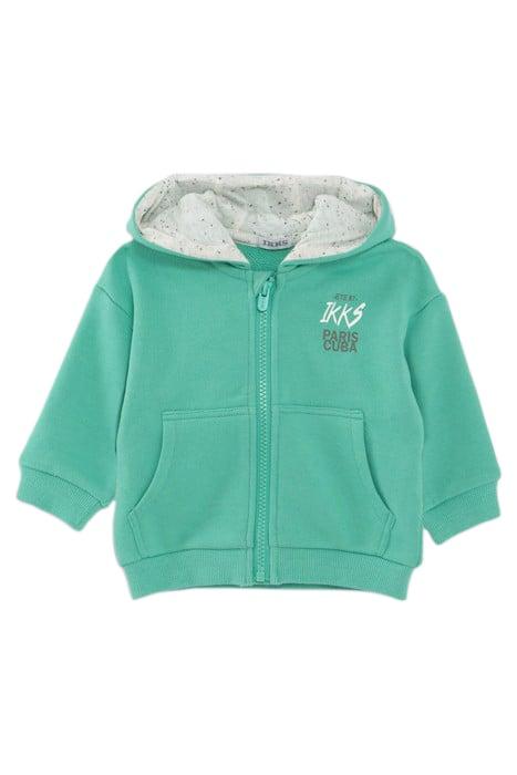 BABY BOYS’ GREEN SWEATSHIRT FABRIC CARDIGAN, GOGGLES HOOD