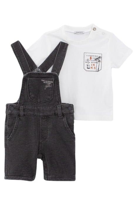 BABY BOYS’ T-SHIRT AND GREY DENIM DUNGAREES OUTFIT