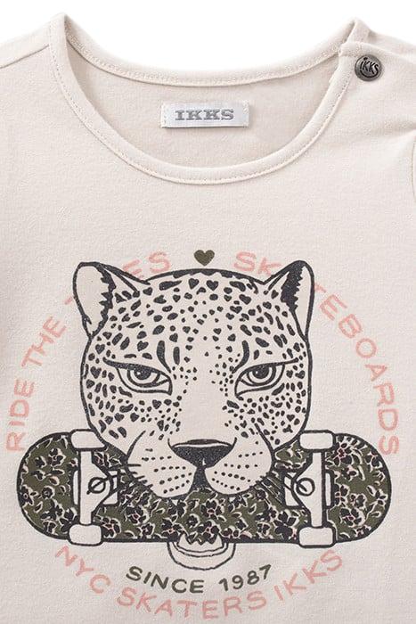BABY GIRLS’ BEIGE LEOPARD AND SKATEBOARD IMAGE T-SHIRT