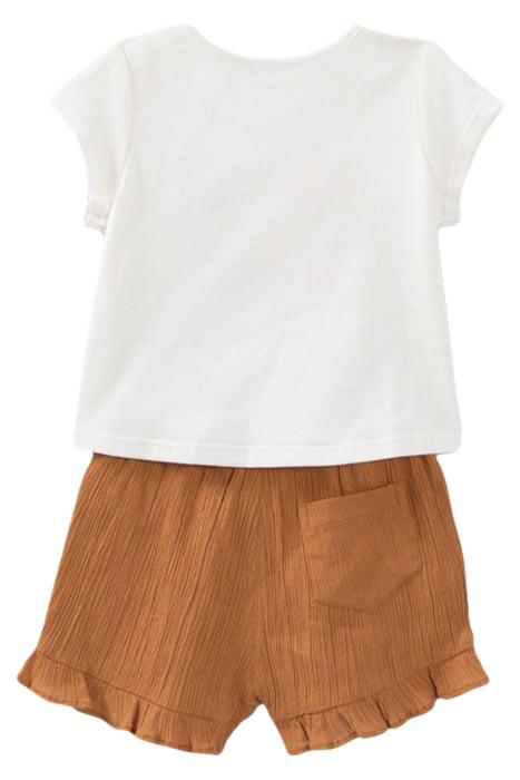 BABY GIRLS’ ECRU T-SHIRT AND CAMEL SHORTS OUTFIT