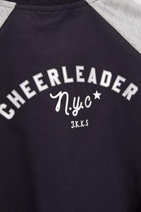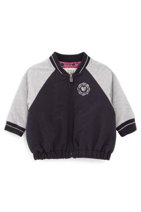 BABY GIRLS’ NAVY BASEBALL JACKET WITH GREY LUREX SLEEVES