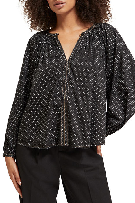BALLOON SLEEVE EMBROIDERED TOP POLKA EVENING BLACK