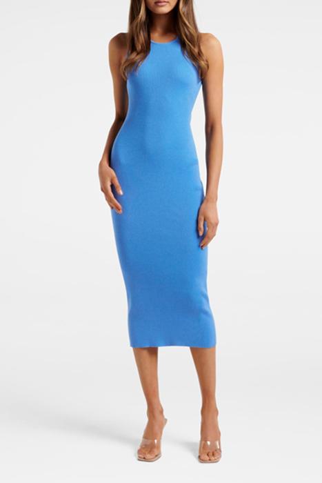 BECKY OPEN BACK MIDI KNIT DRESS TRUE BLUE