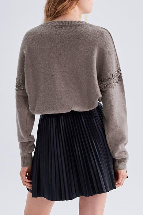 BEIGE KNIT SWEATER WITH DIAMANTE ARMHOLES