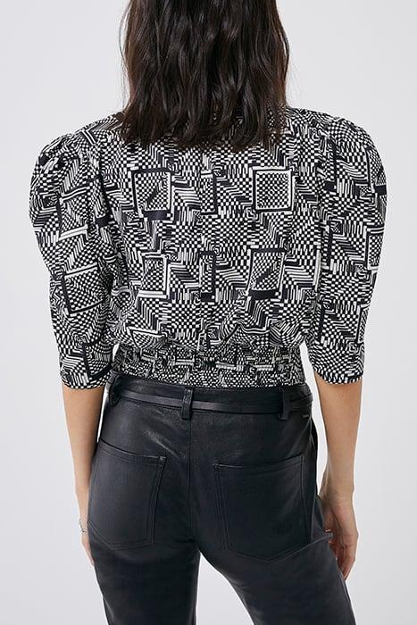 BLACK AND WHITE OPTIC CHECKERBOARD PRINT BLOUSE