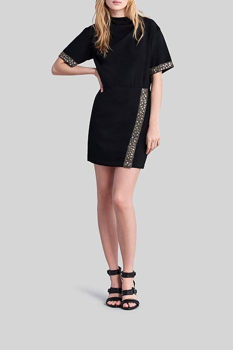 A New Little Black Dress To Wear During The Day For On-Point Style And In The Evening For A Sophisticated Look. It'S Straight And Short, With Beads, Sequins And Studs Decorating The Sleeves And Wrap Seam.