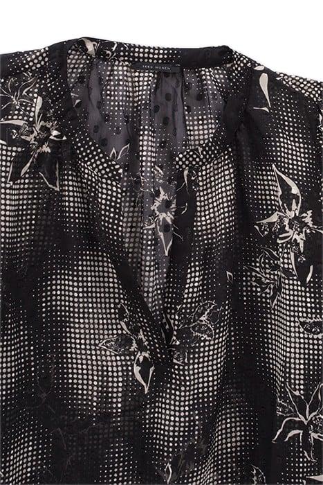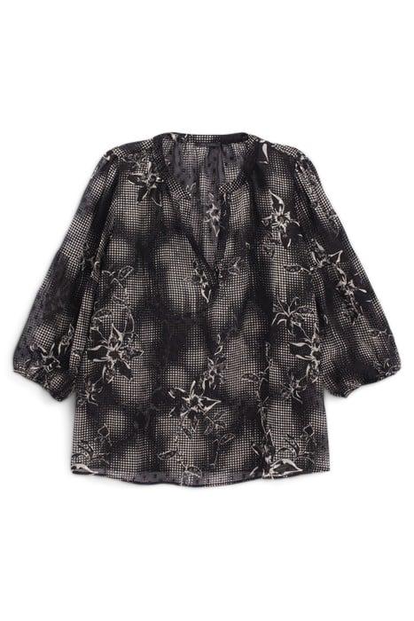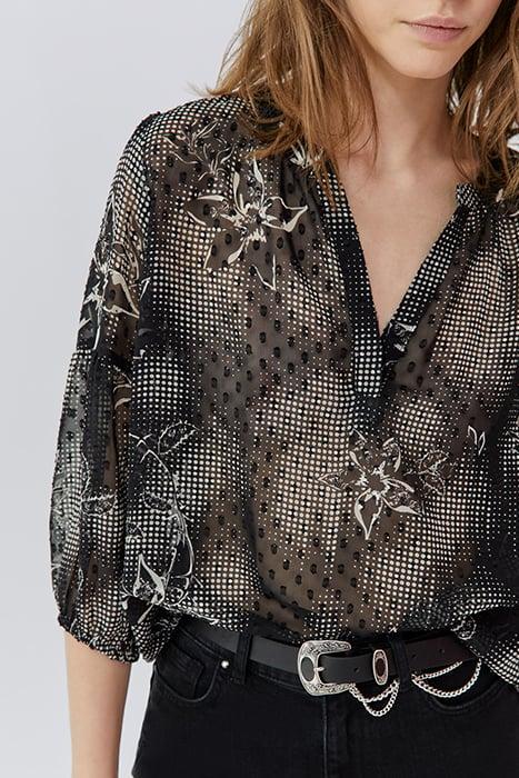BLACK BLOUSE WITH ECRU DANDY FLOWER PRINT