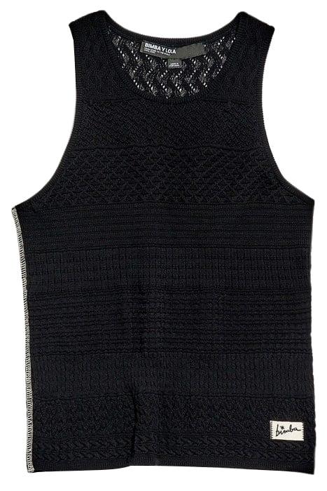 Fitted Knit Top In Black With Various Textured Patterns. Crew Neck Model With Cutaway Sleeves And Exterior Canvas Label Featuring The Logo.