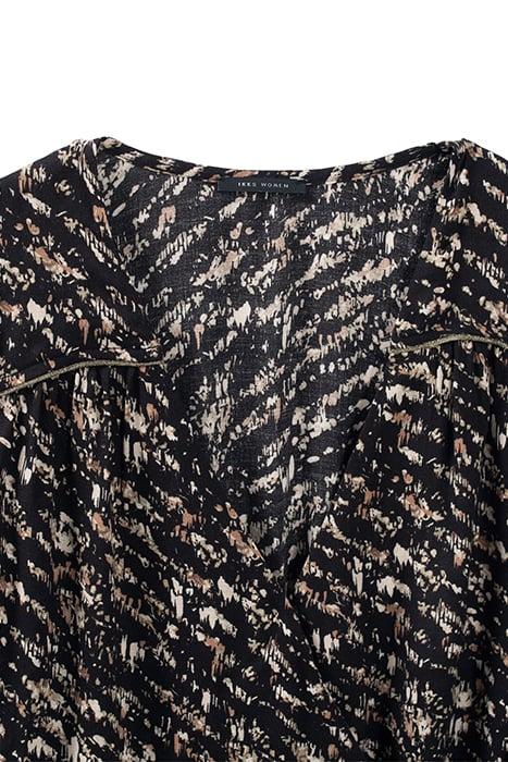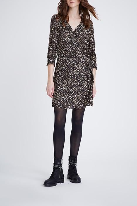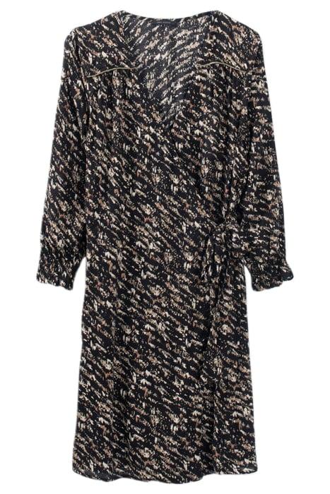 BLACK FUSAIN PRINT WRAP DRESS BLACK