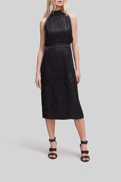 BLACK LACE MIDI DRESS WITH AMERICAN ARMHOLES