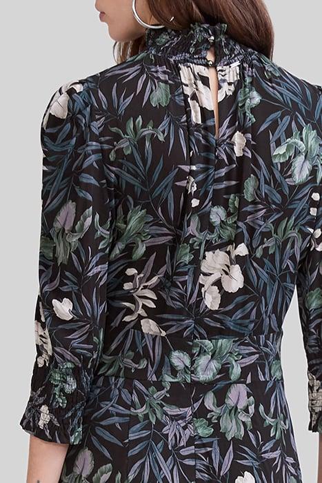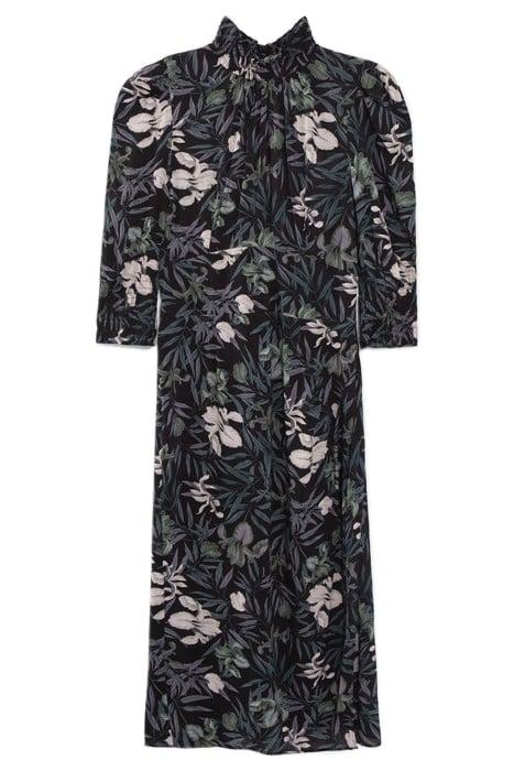 BLACK LENZING™ ECOVERO™ ORCHID PRINT MIDI DRESS