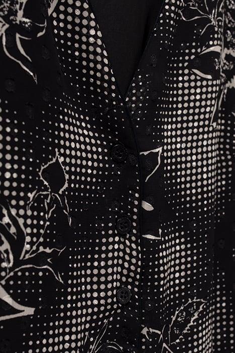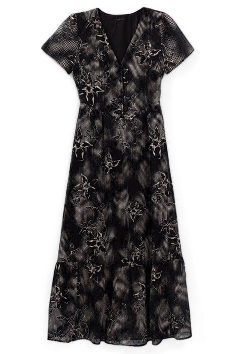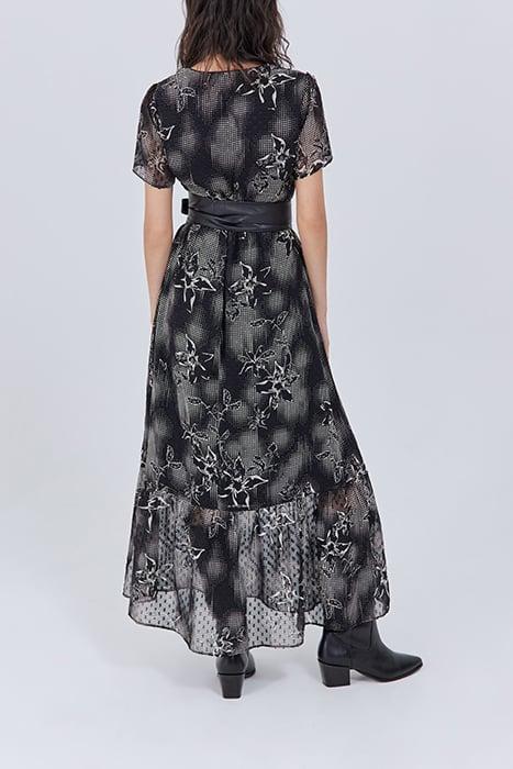BLACK LONG DRESS WITH ECRU DANDY FLOWER PRINT