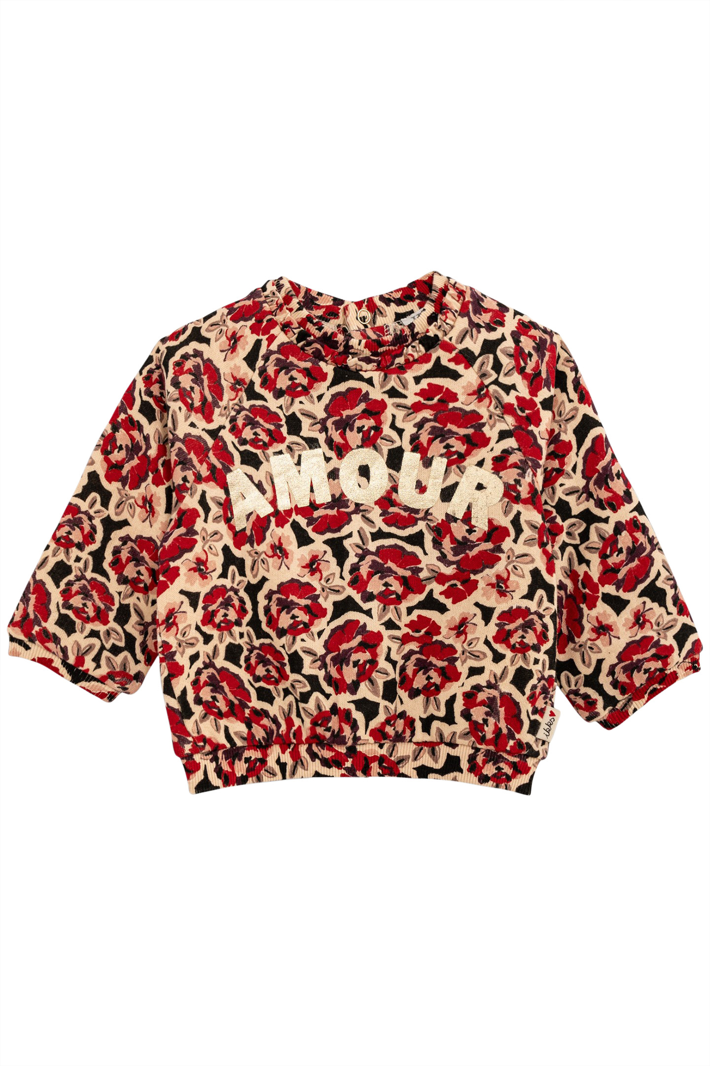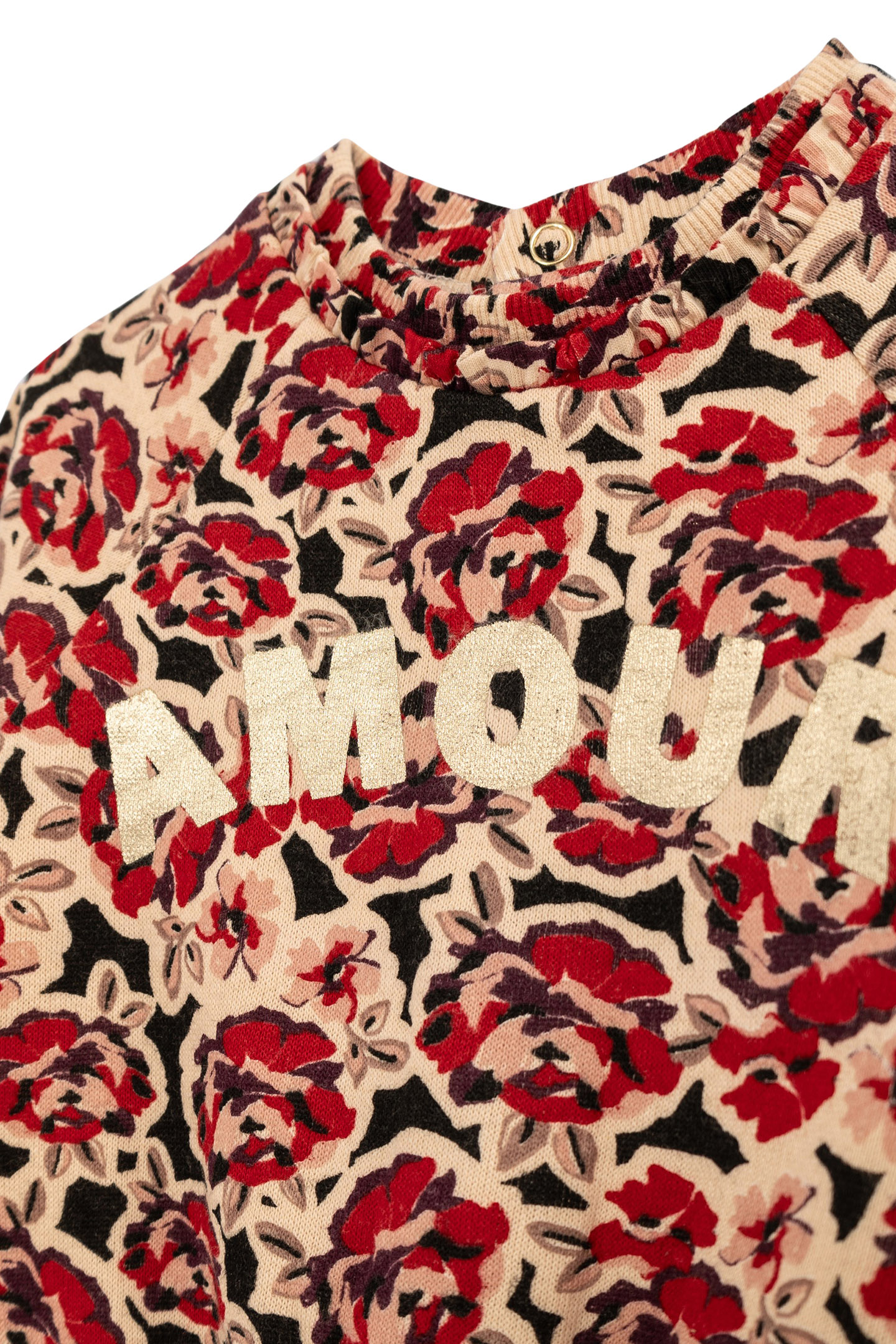 Maxi Roses On Black Fleece. The Baby Girls' Sweatshirt Rocks! On The Front, The Word Amour, All Gold, Shines, Shines, Shines!