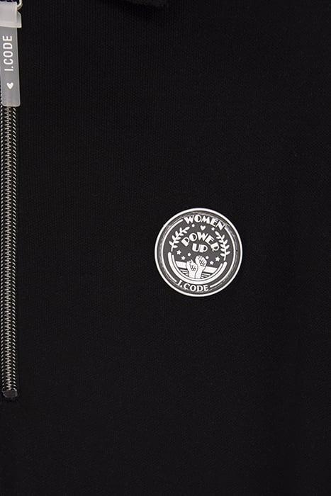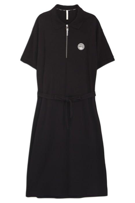 BLACK PIQUE KNIT LONG POLO-SHIRT DRESS