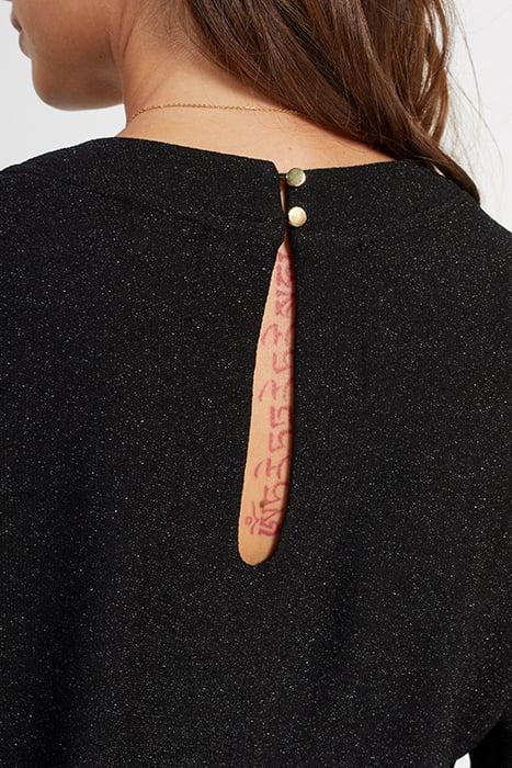 Women’S Black Jumpsuit . V-Neckline, Long Sleeves . 2 Side Pockets, Shiny Knit . Elasticated Waist, Teardrop On Back Fastened With 2 Buttons.