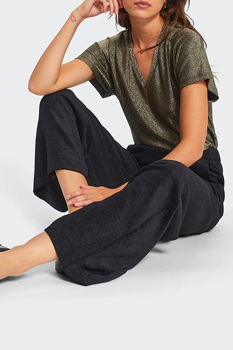 Women’S Black Wide-Leg Suit Trousers . 2 Side Pockets, 2 Faux Piped Back Pockets . Elasticated Waist. .