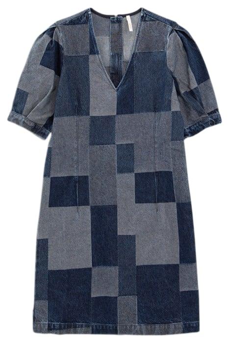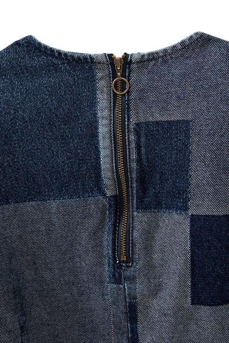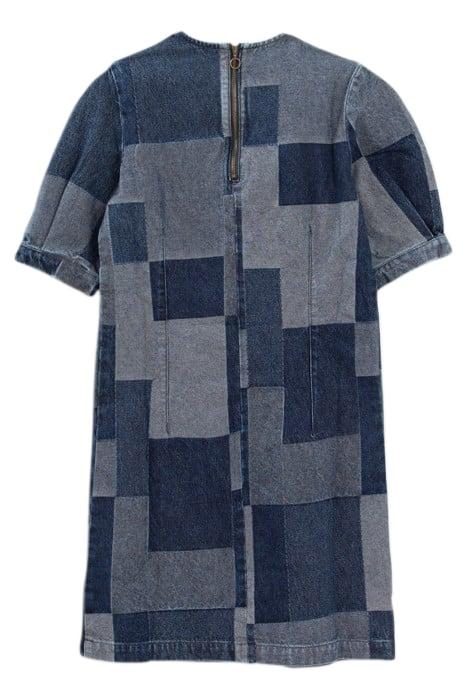 BLUE DENIM PATCHWORK-STYLE DRESS