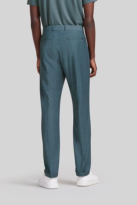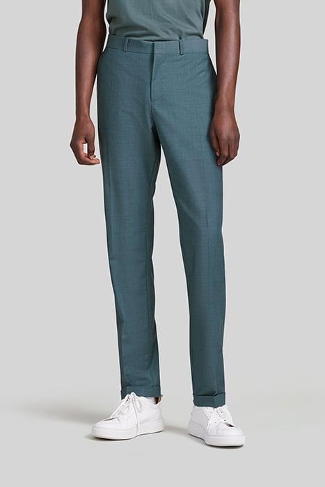 Suit Trousers Play The Modern Card With A Slim Fit And Fixed Turned-Up Cuffs. A Modern Edge Ramped Up By A Gorgeous Bluey Green Colour.