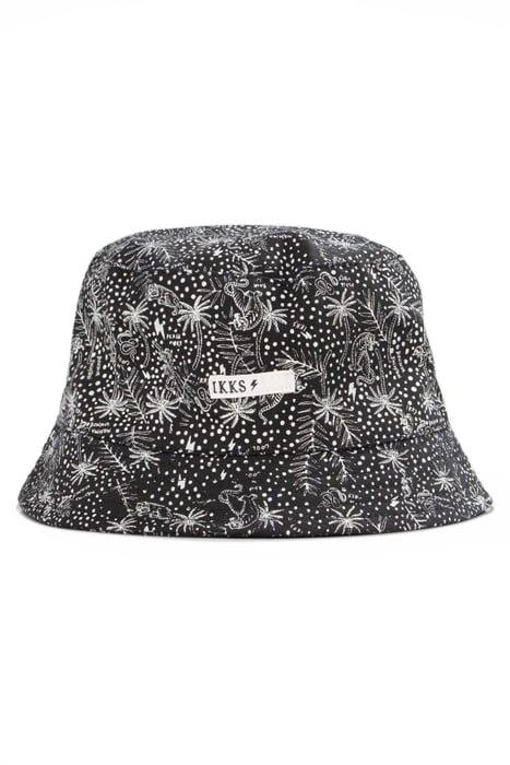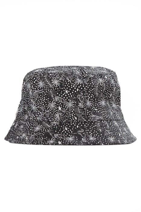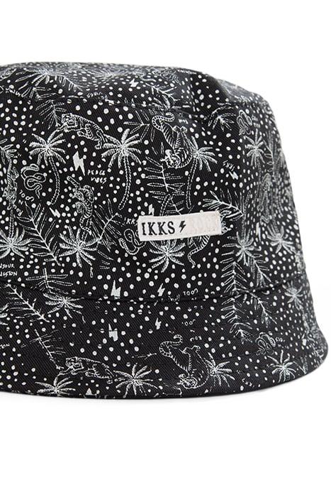 BOYS’ BLACK ORGANIC COTTON SUN HAT WITH EXOTIC LEAF PRINT