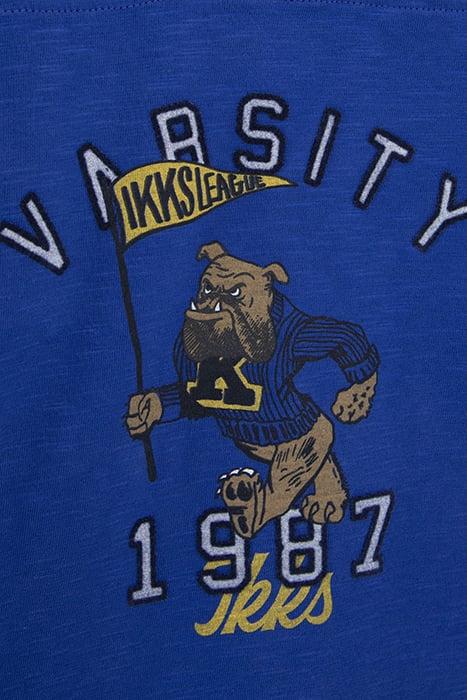 The Bulldog Leads The Ikks League On This Electric Blue Organic Slub Cotton T-Shirt.
