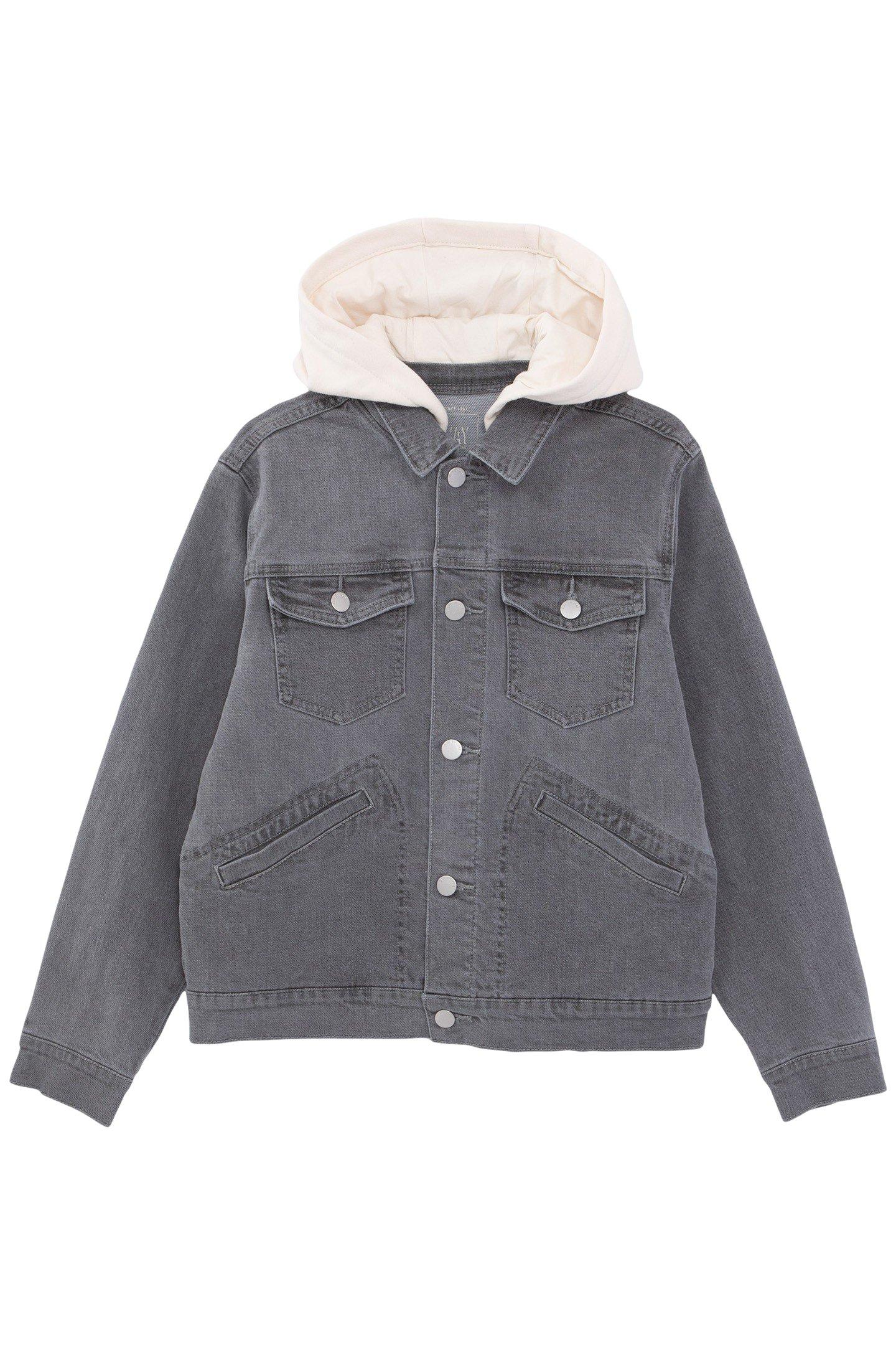 BOYS’ GREY WATERLESS DENIM JACKET WITH DETACHABLE HOOD