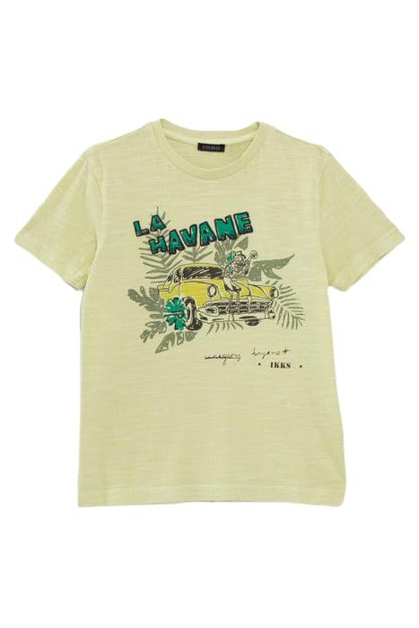 BOYS' LIME T-SHIRT WITH SKELETON-CAR IMAGE AND EMBROIDERY
