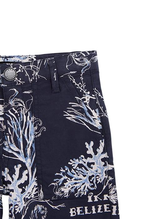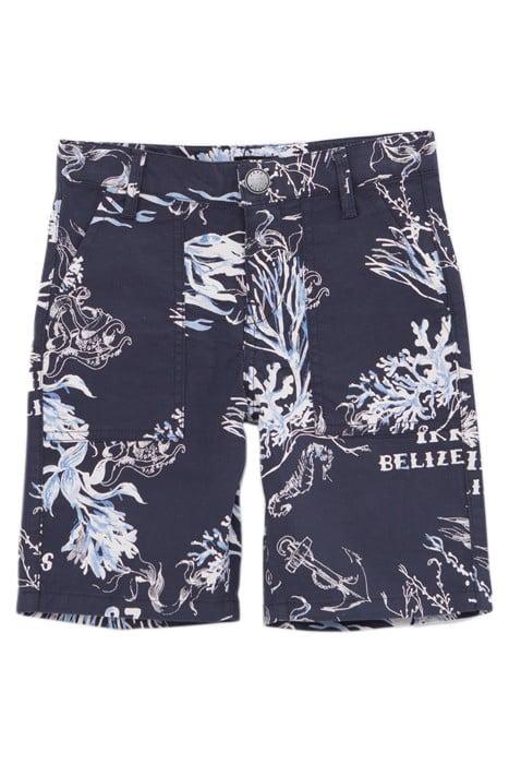 BOYS’ NAVY BERMUDA SHORTS WITH CORAL AND ANCHOR PRINT
