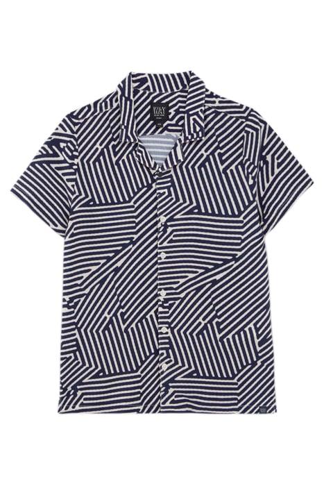 BOYS’ NAVY SHIRT WITH GRAPHIC STRIPE PRINT