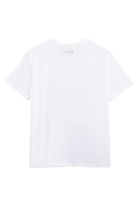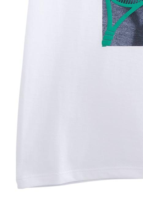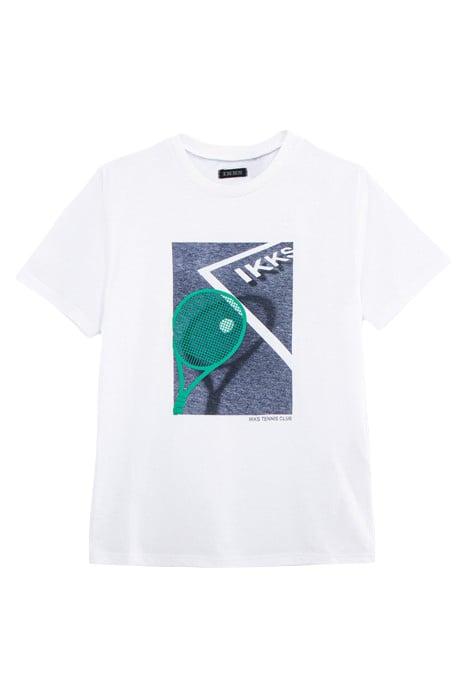 BOYS’ WHITE ORGANIC COTTON T-SHIRT, FLOCKED TENNIS RACKET