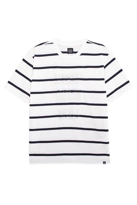 BOYS' WHITE ORGANIC COTTON T-SHIRT, STRIPED WAY LOGO IMAGE