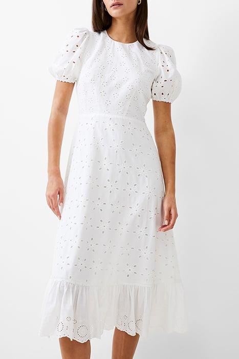 Our Broderie Tiered Midi Dress Is A Summer Wardrobe Delight. Delicate Broderie And An Uplifting Hue Makes This Dress A No-Brainer For Sunshine Days. Styled With Short Puff Sleeves And Falling To A Flattering Midi Length With A Sweet Scalloped Hem, This Style Adds A Fresh And Feminine Flair To Your Wardrobe.