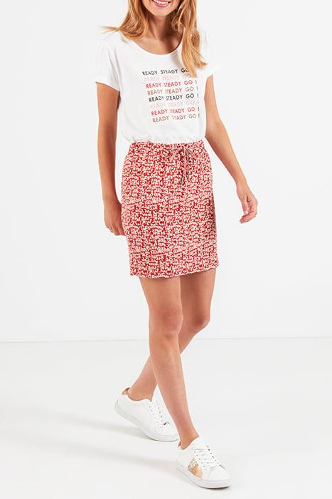 CANDY RED MINI-LETTER PRINT SHORT SKIRT