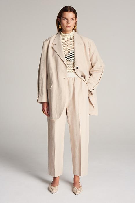 Frenken Cave Beige Trouser With A White Elastic Waistband And Side Pockets. Accented With Softly Pressed Creases For The Perfect Fitting.