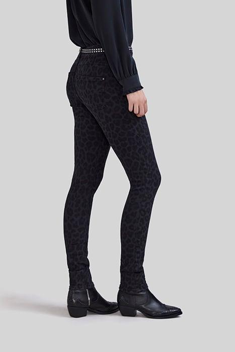 CHARCOAL SLIM JEANS WITH LEOPARD MOTIF