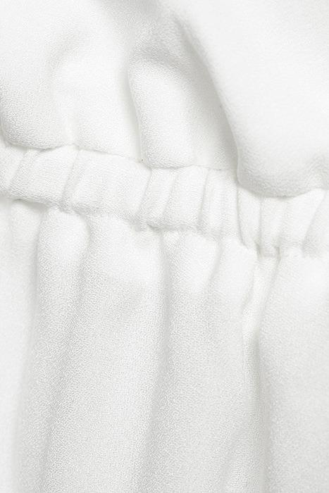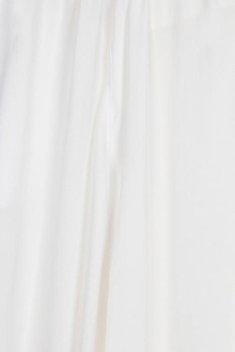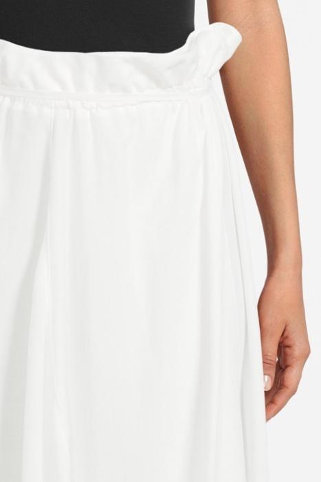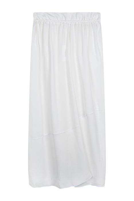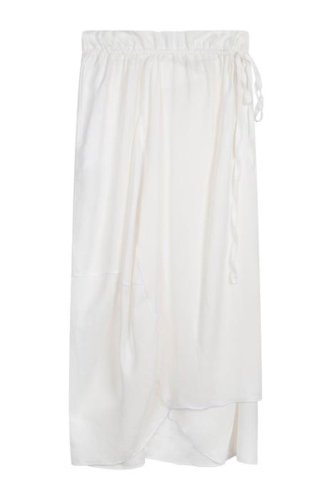 Drapey, asymmetric wrap skirt with drawstring at waist. Cutl ines and bottom hem with delicate babylock. Pocket at side seam on right side only. Maxi length. In triacetate crepe c hiffon.