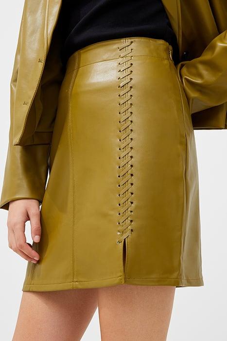 Your Wardrobe Is Set To Gleam With The Addition Of Our Glossy Crolenda Pu Mini Skirt.This Petite Piece Pairs A Smooth Pu Body With A Flirty Side Split And Seasonal Shade.