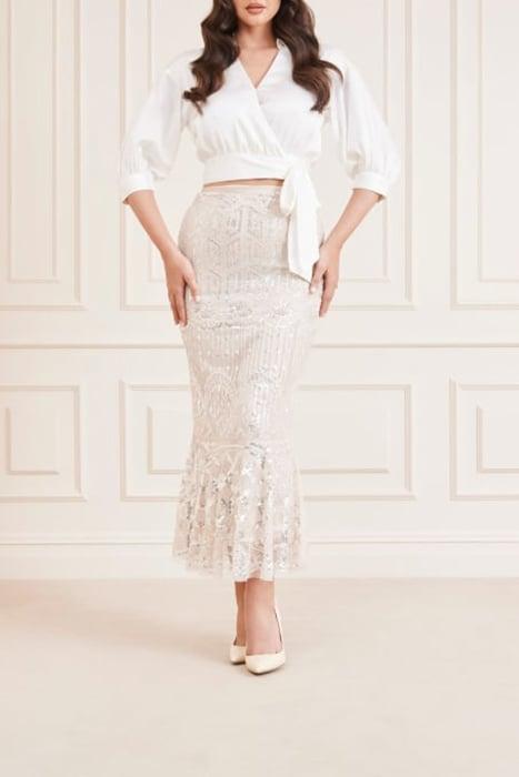 CRYSTAEMBROIDERED CRYSTAL BUFFY MINI SKIRT COMBO