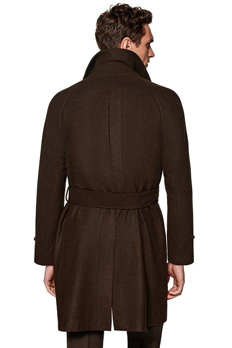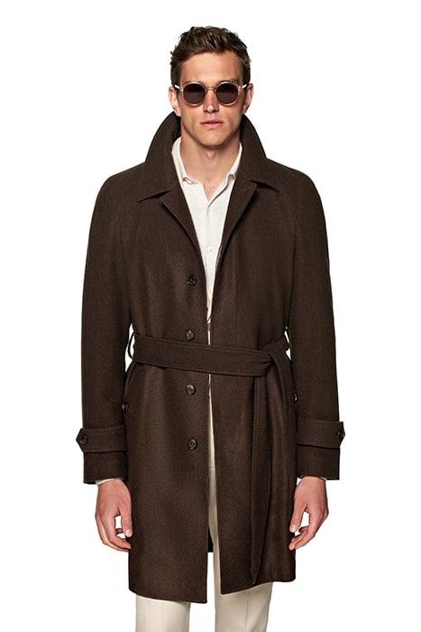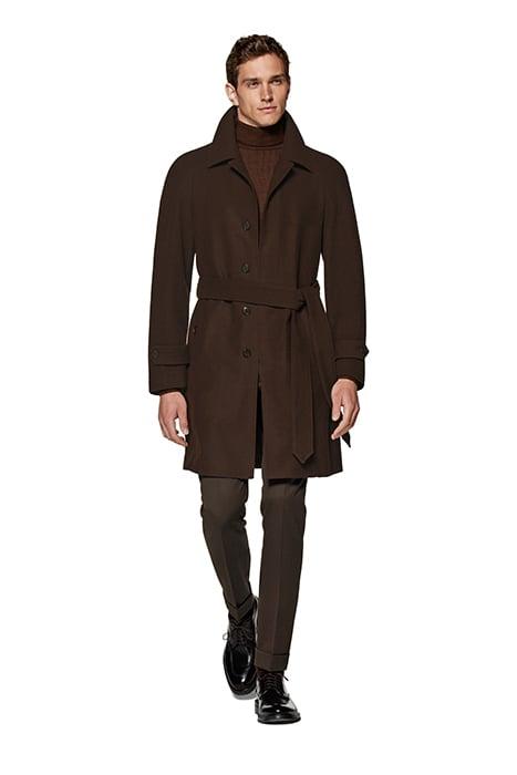 This Unlined, Brown Headington Overcoat Is Comfortably Tailored With Raglan Sleeves And A Back Inverted Box Pleat For Extra Comfort And Mobility, And Features A Broad Car Coat Collar, Hidden Button Closure, And A Detachable Belt.