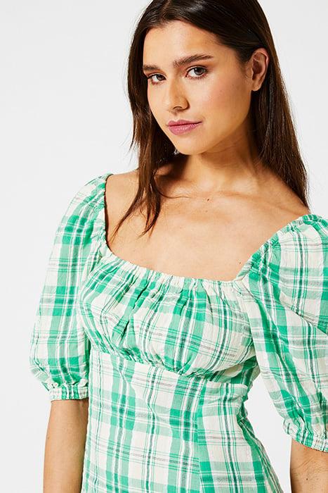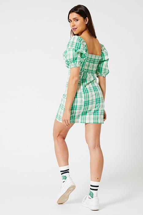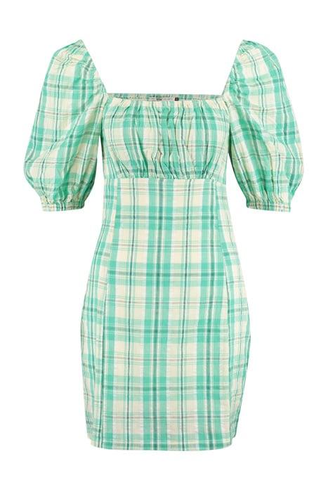 America Today Dress For Women. This Summery Dora Dress Has An All-Over Plaid Print And A Cheerful Color. The Dress Has Puff Sleeves And Is Made Of A Nice Airy Cotton Fabric That Falls Around The Body. This Dress Is Perfect For The Warm Summer Days.