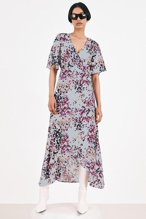 Our "Eden Wrap" Mini Dress Is Printed With A Colorful All-Over Print. This Style Reaching To The Calf Consists Of Viscose And District And Has A Normal Fit With A Transfer. Finished With Short Slightly Wide Sleeves, A V-Neck And Thin Straps That Are Stuck On The Side.