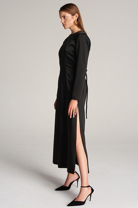 Frenken Drift Dress In Black Full Of Beautiful Details. It Sits Above The Ankle And Has A Side Opening In The Leg. With Shoulder Pads And A Beautiful Back Opening, With Self-Fabric Straps And Maximized Stoppers To Adjust To Your Liking, This Dress Creates A Luxurious Feel. Tie It Up For A Flattering Silhouette Or Wear It Looser.