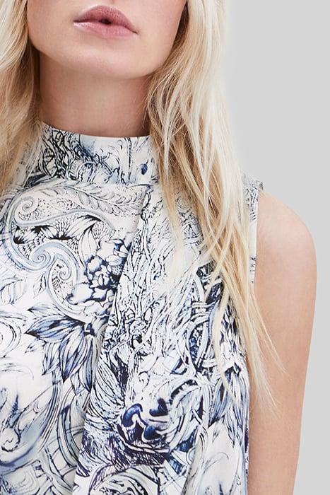 You’Ll Really Like How Light This Top Made In Javanese Viscose From Sustainably Managed Forests Is. A Tattoo Print That Reflects The Marine World Makes It Look Gorgeous, As Well As The High Neck And Sleeveless Combo.